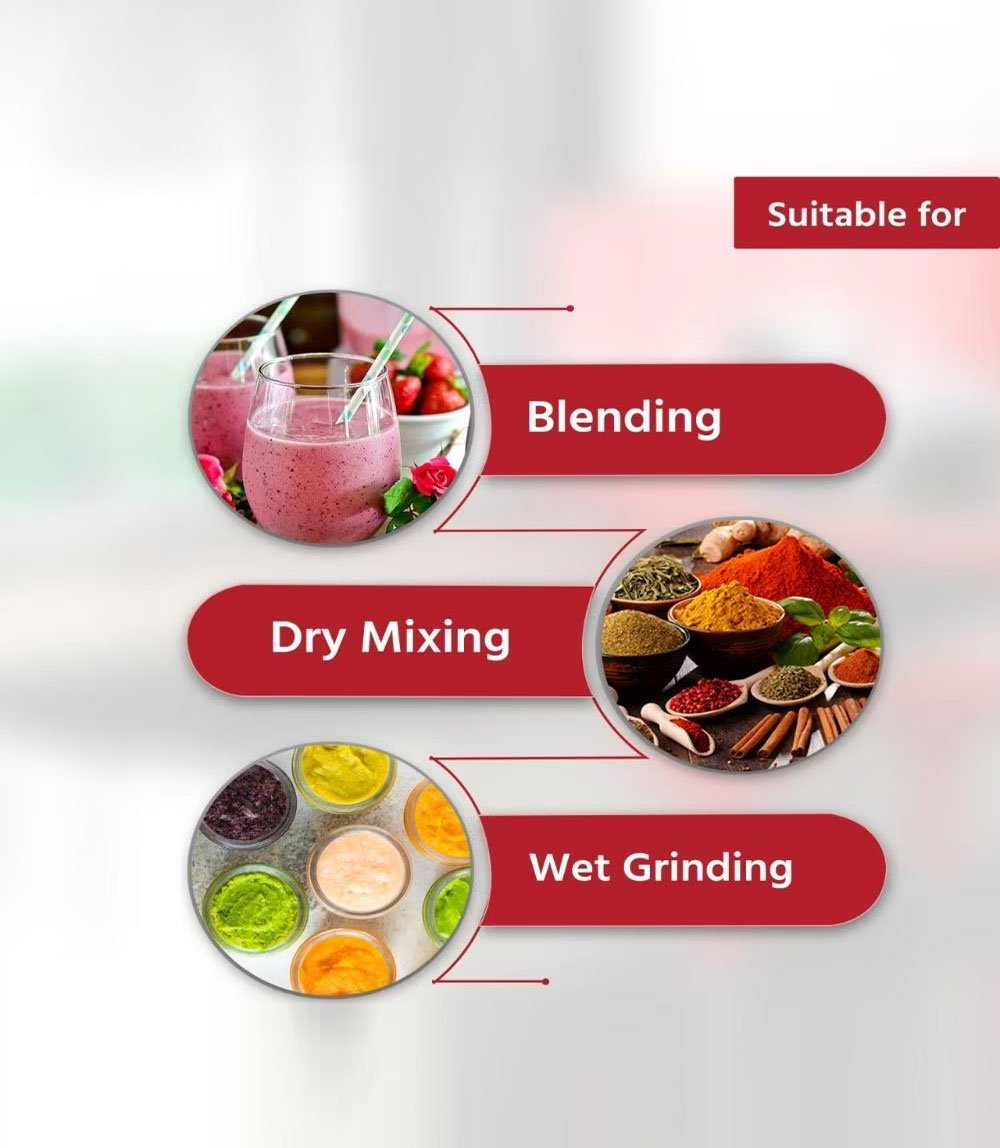 | Functions Supported: | Grinding, Mixing, Blending, Liquidizing |